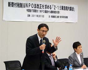 ■新寄付税制及びNPO法改正を求める院内集会であいさつ(2月15日)