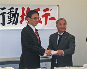 各団体の代表からは、「政府は年金支給額を0・4%引き下げるというが、年金生活者は数十円の買い物でも悩んでいる」、「『子ども・子育て新システム』で、国会に法案を提出させない署名にとりくむ」などと発言。雇用では「高校生が地元に就職できないと、地域経済だけでなく、地域の存立にもかかわってくる。地元中小企業の振興を」という訴えも。また「家計簿運動から、各種保険料が急増し、年間の消費税は3・7カ月分にのぼるなどの実態が明らかになった。消費税増税をやめさせたい」との意見も。 民主党が自民党政治に逆戻りし、国民との矛盾を深めている。内需を拡大して、家計をあたためる予算、沖縄の米軍基地撤去など根本から転換を求めていく。あわせて、日本航空の整理解雇撤回や環太平洋連携協定(TPP)参加阻止、国保料の引き下げなど、国民のさまざまなたたかいと結んで、論戦をすすめたい。 |