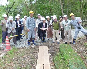 東日本大震災では、閉鎖された源五郎沢堆積場(約16万立方メートル)が崩れ、近くを走る「わたらせ渓谷鉄道」が不通になるなど深刻な被害を出し、唯一稼働中の「すのこ橋堆積場」(約700万立方メートル)についても住民から崩壊を心配する声が上がっている。 古河機械金属足尾事業所の久能正之所長らから崩壊原因や今後の対策などについて説明を受け、現場を視察した。 久能所長らは「源五郎沢」崩壊の原因について「堆積場の最下部で起きた地すべりによるもので、液状化ではない」と説明。国と協議して来年1月から本格的な対策をとる考えを示した。また、高さ約100メートルの土砂で築いたダム形式の「すのこ橋」については、水や堆積物がダムを越えることはなく、安全性は確保されていると強調した。 非常時には、水や堆積物の流出から避難する時間をかせぐため、バリケードを設置する必要がある――と指摘すると、古河側は「考えてみたい」と回答。 「すのこ橋」近くに住む男性は「昨日も、ドンと突き上げるような震度3レベルの地震があった。地震のたびに堆積場は大丈夫かと思う日が続いている」と不安な思いを訴えていた。 盛り土による人工地形のところで事故が起きており、他地域の調査も行い、堆積場の設置に関わる国の基準の見直しに取り組みたい。 |