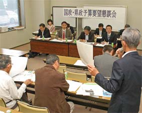 懇談では、放射線量の詳細な調査と情報提供、住民への放射線量測定器貸し出しと測定方法・除染についての講習会開催、各学校への放射線測定器配備など、国や県の放射能汚染対策の強化を求める声が相次いだ。 県労働組合会議は、全国一律最賃制導入と時給1000円以上の最賃引き上げ、公契約の改善。新婦人県本部は、地域の避難所となる小中養護学校の校舎・体育館の耐震化の早期完了などを要望した。 子どもの医療費無料化を実施する自治体にたいする政府のペナルティー中止や、通学・通院が必要な生活保護受給者への自動車保有を認めるよう県・市に指導すること、有害鳥獣よけの柵設置の補助金増額などの要望も出された。 TPPや「税と社会保障の一体改革」など野田内閣がアメリカと財界の「ご用聞き内閣」としてやろうとしていることに、国民的な反撃が広がりつつある。一歩でも二歩でも国民の願いを前進させるために力を合わせて頑張っていきたい。 |