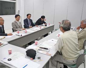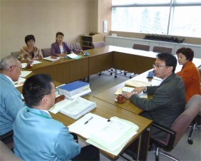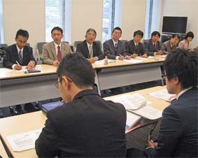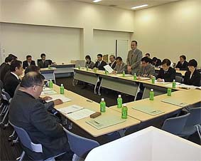 | ■全建総連と党議員団の懇談(11月25日) 「公共建築物における地元木材の利用促進と建設職人の雇用確保」「被災3県の瓦礫(がれき)処理でのアスベストばく露防止」など全建総連の要求項目の説明を聞き、被災地の住宅建設や公契約条例の制定状況など、こちらからの質問にもとづいて活発に意見交換。「前年度並みとなった建設国保の来年度概算要求を確実に確保し、いっそう前進させよう」と語り合った。 |