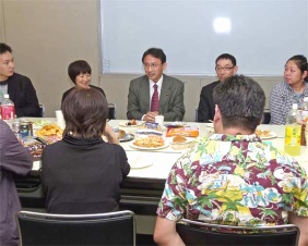 ■さいたま市南区/次世代のつどい(11月13日) 党さいたま南区委員会主催の「次世代のつどい」に参加。30代、40代の参加者と交流。生活が困難となる非正規雇用の実態や放射能汚染の問題、インターネットを活用した日本共産党アピールの方法など、楽しい交流、懇談の機会となった。 インターネットで飛び交っている「そんなの関税ねえ、そんなの関税ねえ、はいTPP」というジョークは、ちょっと外したでしょうか。 | ||||