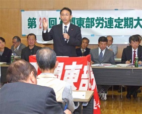 ■埼玉・富士見市/入間東部労連の定期大会(11月25日) TPPが国政の重大争点に。野田首相は「アジアの成長を取り込む」というが、TPP参加国に占める日米の貿易量は91%にものぼる。実質日米FTAだ。関税撤廃で失業者340万人と、農水省が試算しているように、かえって日本経済への深刻な打撃となる。日本の輸出の最大の障害は関税ではない。円高・ドル安だ。円高・ドル安の解消のためには、投機マネーの規制とともに、国内の需要を増やすこと。不安定雇用の解消、最賃の引上げなど勤労者の所得向上こそ行うべきだ。 TPP参加阻止へ、壮大な共同行動を。労働運動の果たす役割は大きい。 | ||||