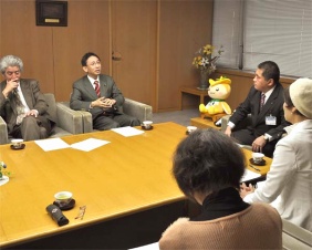 ■上田埼玉県知事から国への要望を聞き、意見交換(11月16日) 埼玉県主催の国会議員連絡会議に出席し、来年度の国の施策に対する県側の提案・要望をお聞きし、意見交換。県からは放射能汚染対策や被災者支援策など多数の提案がされた。 もちろんすべての問題で一致はできないが、共通する要求項目では一緒にがんばりたい。特に放射能汚染問題では、お茶に対する損害の全面賠償を東電、国に強く求めていきたい。また土壌中のストロンチウムの調査についても文科省に要請していく。被災者支援策では、総務省が発表した『取崩し型復興基金』の対象に埼玉県が入っていないのは問題だ。久喜市の液状化被害対策として活用できるように、知事からも『取崩し型復興基金』の埼玉県への適用を国に要請してもらいたい。 これに対し、知事は「(取崩し型復興基金について)いいご示唆をいただいた。国に働きかけていきたい」と述べた。 民主党国会議員にも、がんばってほしい。 | ||||