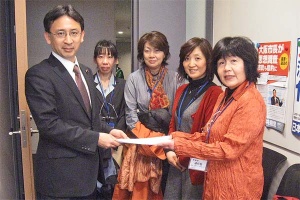 埼玉本庄民主商工会の代表から「原発からの撤退、再生可能エネルギーへの転換」、「TTPに参加しないこと」をもとめる請願をうけとり、懇談。