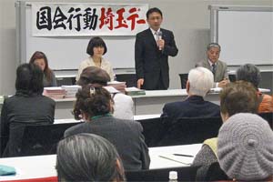 今週末に消費税増税法案の閣議決定がねらわれる緊迫した情勢のもとで、消費税増税と社会保障の一体改悪、TPP(環太平洋連携協定)参加に反対し、米軍普天間基地の即時撤去など、埼玉と全国の大運動実行委員会などが主催する国会要請の集会がそれぞれ開かれ参加した。 |
