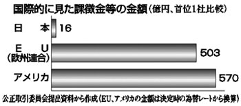 | カルテル・談合(不当な取引制限)を取り締まる独占禁止法の改定案に強く反対してきた日本経団連の会長・副会長企業が、独禁法違反を繰り返してきたことが、談合問題を調査するなかでわかりました。 カルテル・談合をおこなった企業に課す課徴金を現行水準(大企業製造業で違反対象商品にたいして6%)に引き上げた1991年以降、カルテル・談合をおこなった企業のうち、日本経団連の会長・副会長を経験した企業について調べたところ、同時期に日本経団連の会長・副会長を経験した企業38社のうち、半数近い17社が違反行為をおこなっていました。関連会社を含めれば21社にのぼります。違反行為を繰り返した“常習犯”は7社。松下電器産業は95年以降、3回も繰り返し5千万円を超す課徴金が課されています。また、4億円近くの課徴金を支払った日立製作所のほか三菱重工業、東芝、武田薬品の各社は日本経団連の現副会長企業です。 国境をこえたカルテルである国際カルテル事件に武田薬品、三菱商事、味の素が連座しています。各社は欧米では多額の制裁金などを課されているものの日本では課徴金は課されていません。現行の独占禁止法が国際的にみて「甘い」規制でしかないことを示しています。 企業犯罪の抑止効果の向上をめざすため臨時国会(3日に閉会)に提出された同法改定案は、課徴金の期間・率の引き上げが、日本経団連の反発で圧縮された経過がありました。その改定案も、来年1月開会予定の通常国会で継続審議することになりました。 カルテル談合事件の一覧表もご覧ください 【課徴金】 カルテル・入札談合によって企業が不当に得た利益に相当する金銭を政府が徴収する金銭のこと。違反企業への行政処分として1977年に導入されました。対象商品の違反期間の売上高の一定率を課徴金として国庫に納付します。現行の算定率は91年に改定されたものです。 【カルテル】 商品の販売において競争関係にある事業者同士が、販売価格や販売数量、販売地域などを話し合って決める行為をカルテルと呼びます。たとえば、販売価格についてカルテルを結ぶと、高い価格が設定されることになり、消費者の利益が阻害されることになります。 【入札談合】 入札に参加する事業者が、入札前にあらかじめどの企業がいくらで工事などをすすめるかを話し合って決めてしまい、競争をやめてしまうことです。 |