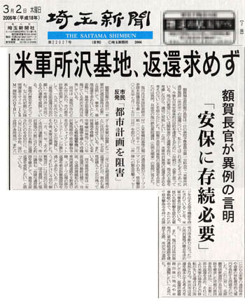 | 2006年2月24日 | 質問主意書の政府答弁 | 百里基地への米軍機訓練移転問題の質問主意書に対し、政府答弁 | ||||||||
