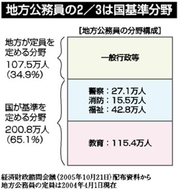 小泉内閣が今国会の「最重要法案」と位置付ける「行政改革推進」法案の本格的審議が、行政改革特別委員会で始まりました。わたしは、法案が地方公務員のうち国が配置基準を定めている教育、福祉、消防など国民生活に密着した分野の基準を引き下げて純減すると打ち出していることを指摘し、「身近なサービスを後退させることになる」と批判しました。「行革推進」法案は、5年間で国家公務員を5%以上、地方公務員を4・6%以上、それぞれ純減することを目標としています。地方公務員の総数は現在約300万人で、そのうち国が基準を定めている分野の公務員数は約200万人です。まさに国民生活に密着した、教育、警察、消防、福祉などが対象分野です。