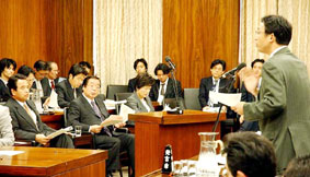 原発検査員の大半が関連企業出身/「もたれあい体制は問題」国の委託で原子力施設の検査をおこなう原子力安全基盤機構の検査部門で、原発関連の民間企業出身者が大半を占めていることを明らかにし政府の姿勢を追及した。 経済産業省原子力安全・保安院によると、同機構の検査業務部に所属する138人のうち、電力会社、原発メーカー、原子力に関係する重電メーカーのOBはそれぞれ8人、20人、53人。ほかに、国からの出向者とOBがそれぞれ11人と9人いて、同機構に直接採用されたのは37人にすぎない。 わたしは「独自の人材を育成しないで、事業者に依存した検査体制が継続していることは問題だ。国と事業者がもたれあう検査体制では、国民の安心・安全は確保できない」と指摘した。 志賀原発事故隠し/行政処分甘すぎると批判 北陸電力志賀原発の臨界事故隠し問題で、同社経営陣の責任を不問にし、厳しい処分をしない政府の対応を批判した。 わたしは、同社の報告書に、事故当時の所長代理が現経営陣の一員であることが記載されていないと指摘したうえで、経産省原子力安全・保安院の調査報告書でも、事故を8年間隠し続けてきた経営陣の責任が言及されていないと批判した。 また、原発事故として国際原子力機関の評価尺度でレベル2(暫定)の国内では過去最悪のものであること、2002年の東京電力不正事件では「意図的な偽装」で悪質なものとして同社の福島第一原発を1年間停止させたことを指摘。悪質、重大な隠ぺいをおこなった北陸電力にたいしては、これと同様の原子炉の運転停止処分をすべきだと迫った。甘利明経産相は、法にもとづく保安規定の変更命令を出しており、「みせしめのために止めるわけではない」などと述べた。 | ||